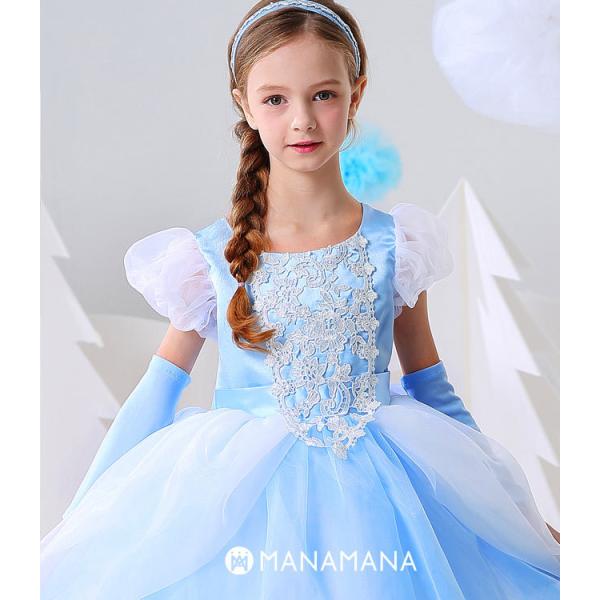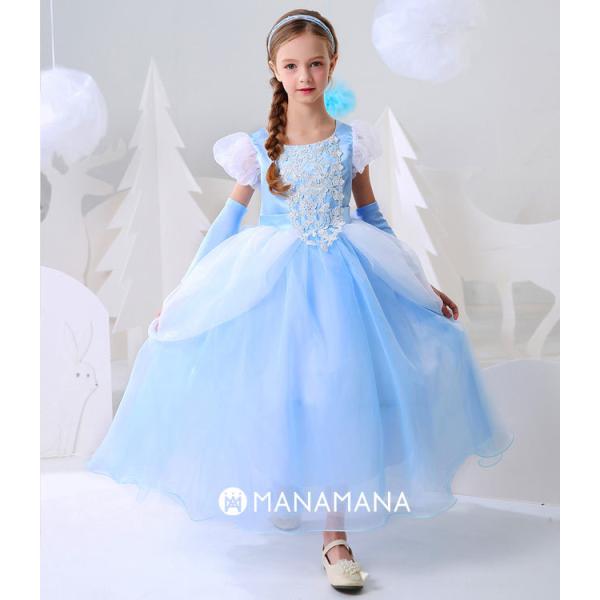 シンデレラ ドレス キッズ 子供 用 プリンセス ハロウィン コスプレ 女の子 衣装 コスチューム 誕生日 クリスマス プレゼント 100 110 120 130 140 cm 手袋 付