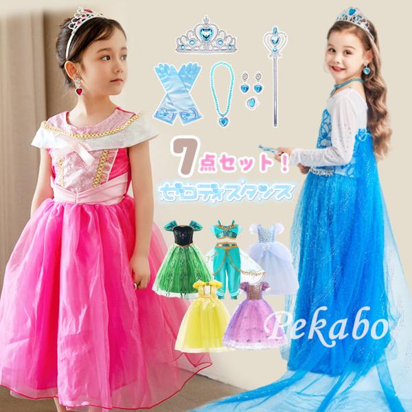 プリンセス ドレス 女の子 ハロウィン コスチューム アナ 雪の女王 シンデレラ エルサ コスプレ キッズ 仮装 白雪姫 お姫様 魔女 100 110 120 130 140 150