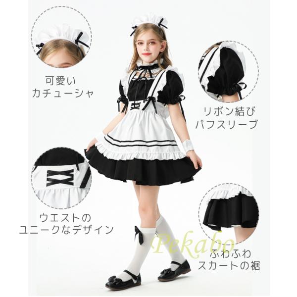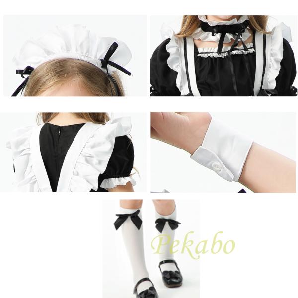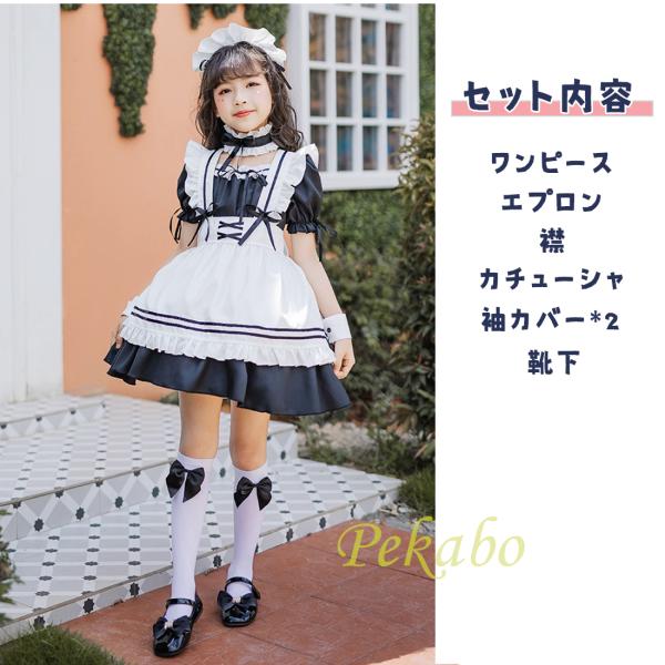 女の子 メイド服 子供 ワンピース ハロウィン コスプレ プリンセス ドレス アリス 仮装 ロリータ エプロン 可愛い 萌え 半袖 長袖 靴下付 110 120 130 140 150