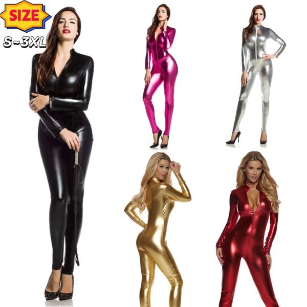 ブラックウィドウ コスプレ衣装 セクシー 前開き ボディスーツ レディース タイトスーツ 光沢 全身タイツ ハロウィン 仮装