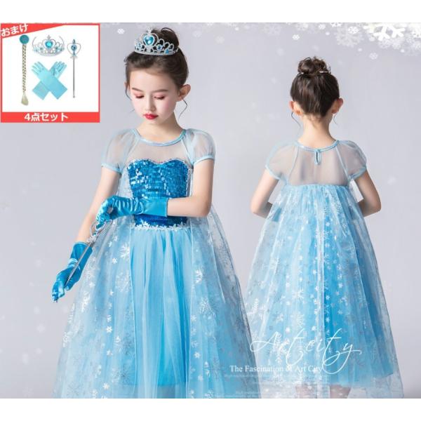 子ども服 女の子 ドレス ワンピース 子供 キッズ プリンセス 子供 仮装 アナ雪 なりきり エルサコス ドレス コスチューム ハロウィン 5点セット