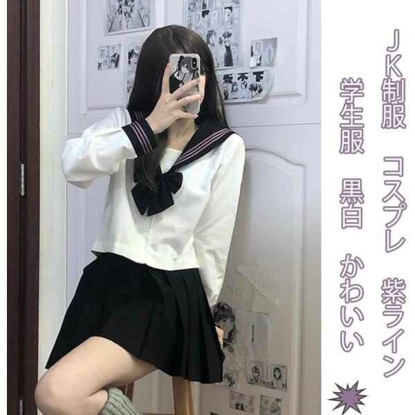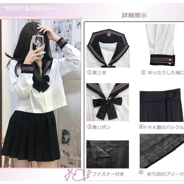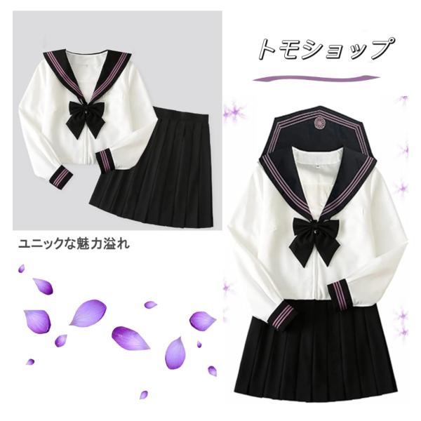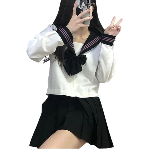 セーラー服 コスプレ 女子高生 学生服 コスチューム 4点セット セーラー服 長袖 上下セット 前開き 中学生 通学 入学式 ハロウィン 仮装