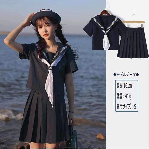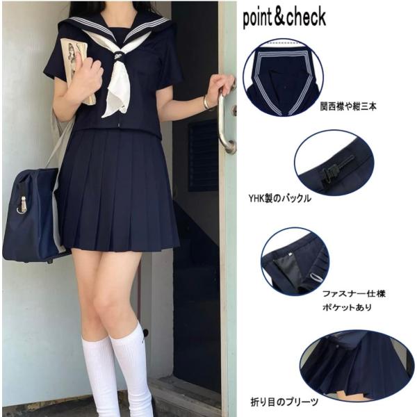 セーラー服 コスプレ 大きいサイズ 女子高生 5xl 学生服 半袖 紺三本 コスチューム 4点セット セーラー服 長袖 上下セット 前開き 中学生 通学 ハロウィン 仮装