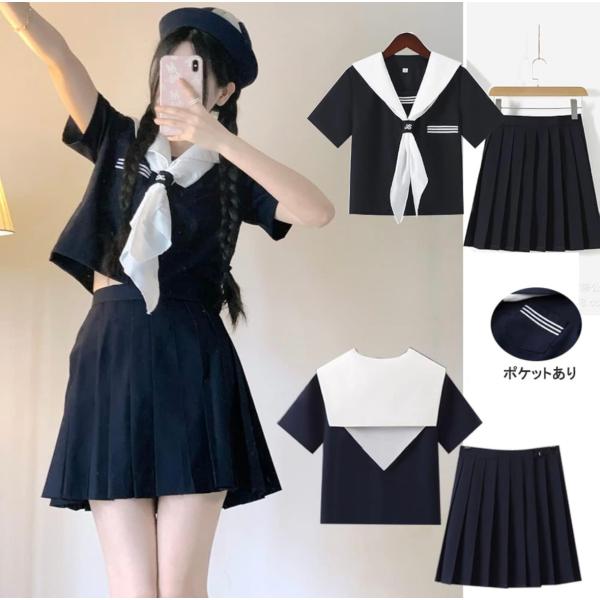 セーラー服 コスプレ 大きいサイズ 女子高生 5xl 学生服 半袖 コスチューム 4点セット セーラー服 長袖 上下セット