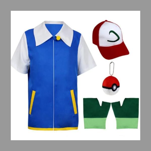 送料無料!ハロウィン衣装 コスプレ 子供コスプレ4点セット コスプレ 子供コスチューム 衣装 上着 手袋 帽子 サトシ 青い ジュニア 大人子供 キッズ プレゼント