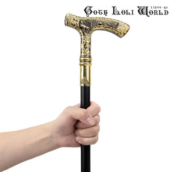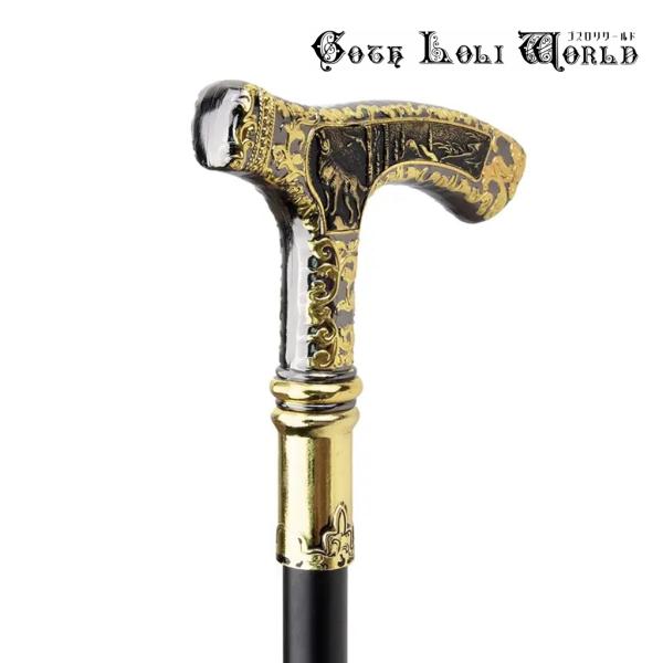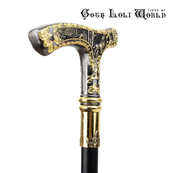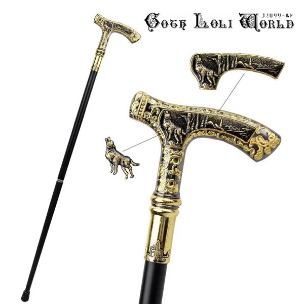 ゴスロリワールド TUE004 狼様 紳士 ステッキ 魔法 杖 つえ 黒金色 高級 金属 ファッション ゴシック コスプレ ステージ 舞台 仮装