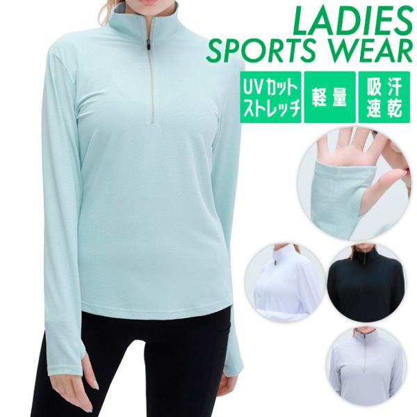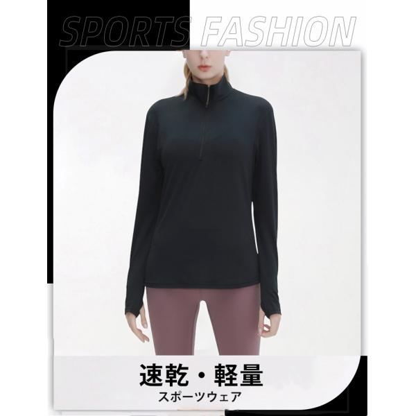 ジップ付きスポーツウェア 日よけ 夏生地 レディース ランニングウェア トップス ロングスリーブ ジョギング スポーツウエア 速乾性