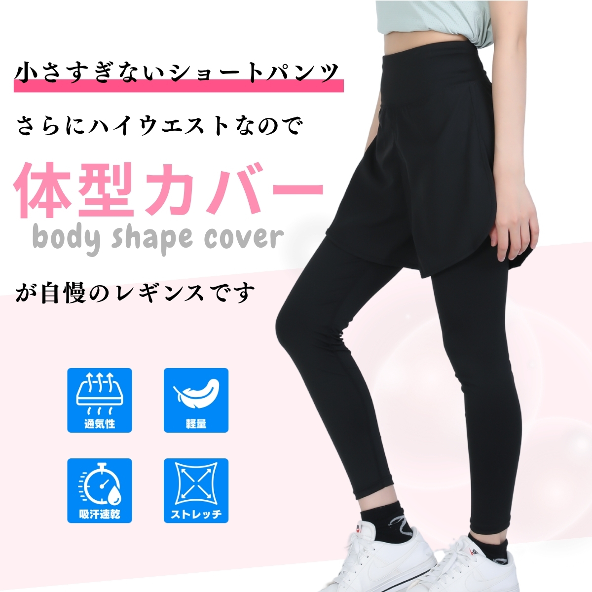 ショートパンツ付きレギンス 一体型 レギンス レディース スマホポケット付き ランニングウェア ランニングパンツ 夏 春 フィットネス タイツ レギパン