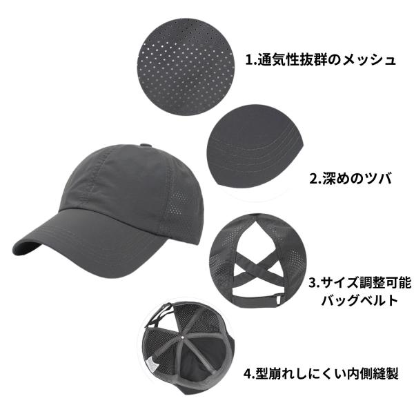 ランニングキャップ スポーツ 帽子 レディース 深め スポーツキャップ UVカット メッシュ キャップ 【まとめ髪でかぶれる】
