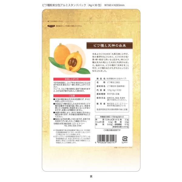 新パッケージ 枇杷種粉末 分包タイプ 120g(4g×30包)3個セット 国産ビワ種100%使用 アルミパック