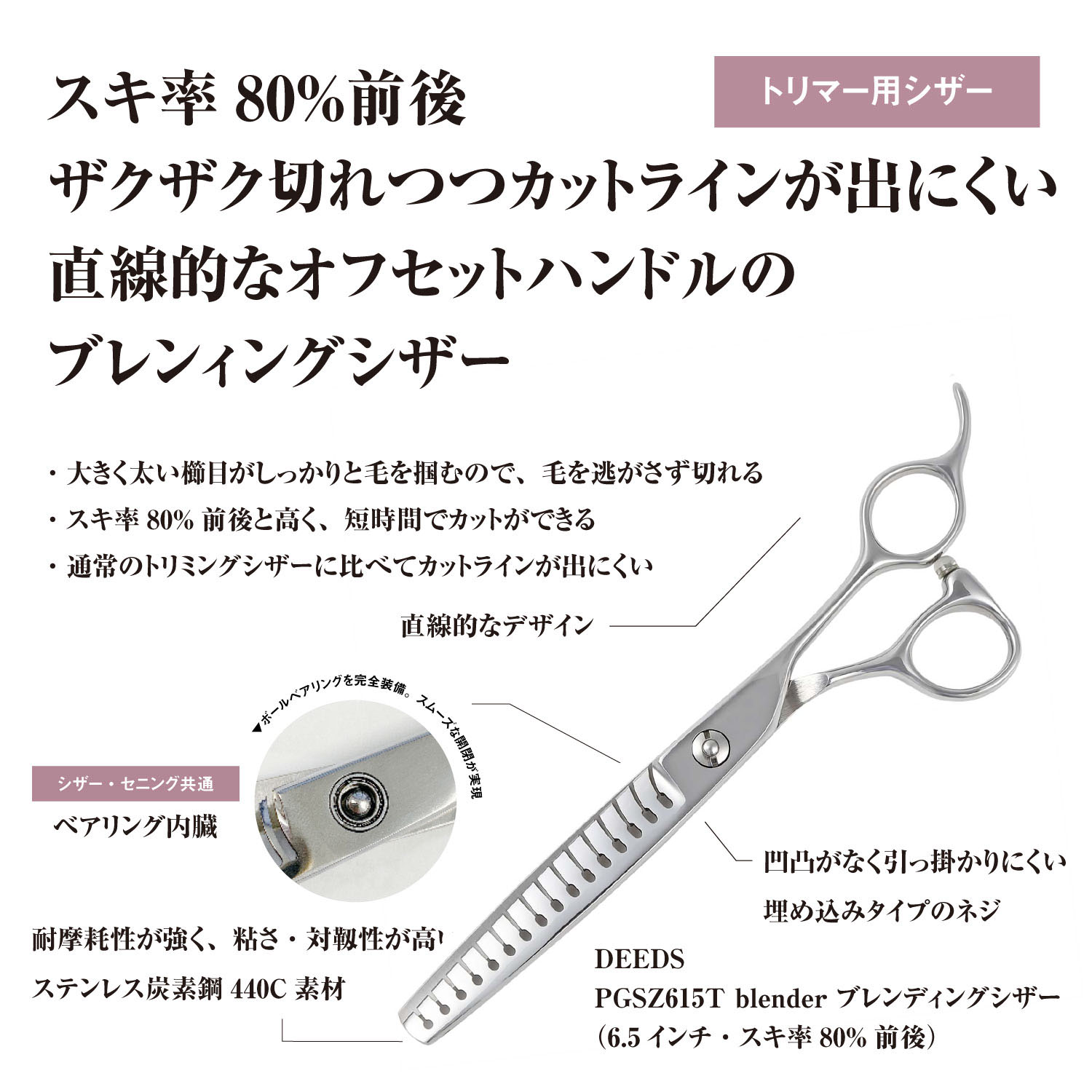 DEEDS トリミング はさみ シザー すきばさみ PGSZ6516T blender ブレンディングシザー 6.5インチ スキ率80%前後 トリマー セニング ペット 犬 トリマー