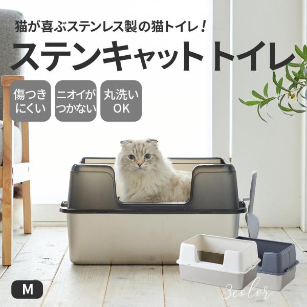 (新発売猫砂プレゼント中) [大型 猫トイレ ステンキャットトイレ M] 猫 猫用 ネコ ねこ用 トイレ 大きい 大きめ スプレー 深い
