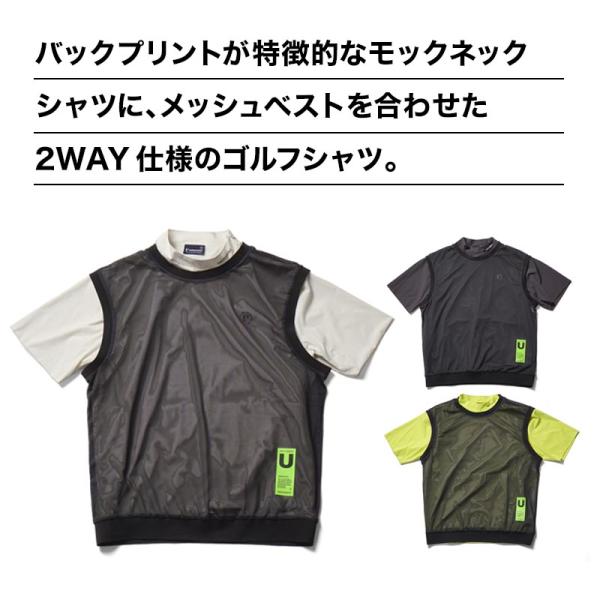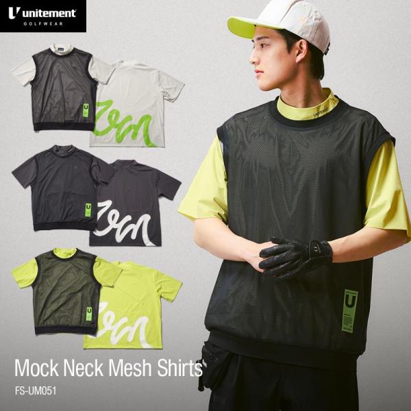 ゴルフウェア メンズ 半袖 ゴルフ シャツ 夏 コーディネート 大きいサイズ 撥水 unitement ユナイトメント Mock Neck Mesh Shirts