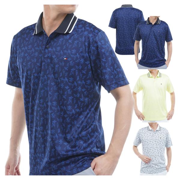 トミーヒルフィガー ゴルフ ポロシャツ メンズ 半袖 シャツ 吸水速乾 UVカット ゴルフウェア ブランド 総柄 ロゴ THMA623