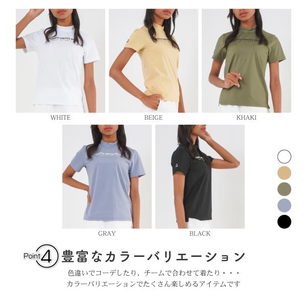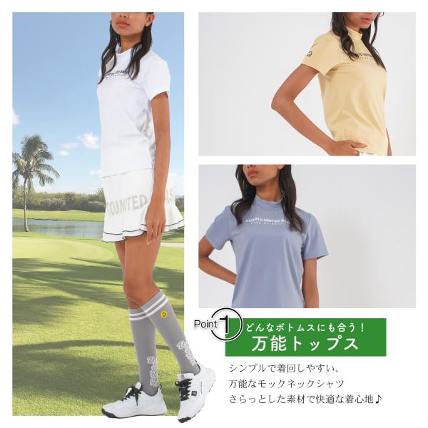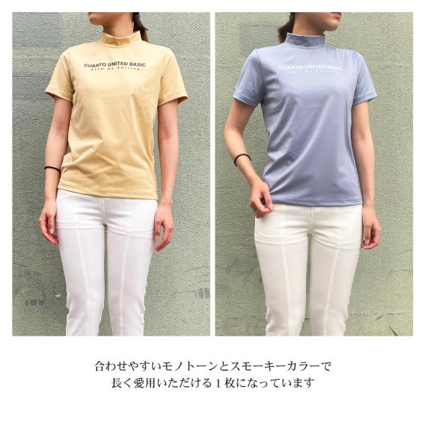 モックネックシャツ 半袖 接触冷感 ミニロゴ レディース クアルトユナイテッド ゴルフウェア 23BASIC
