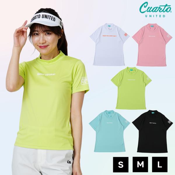 モックネックシャツ 半袖 スムースカットソー メッセージロゴ レディース クアルトユナイテッド ゴルフウェア 24SS