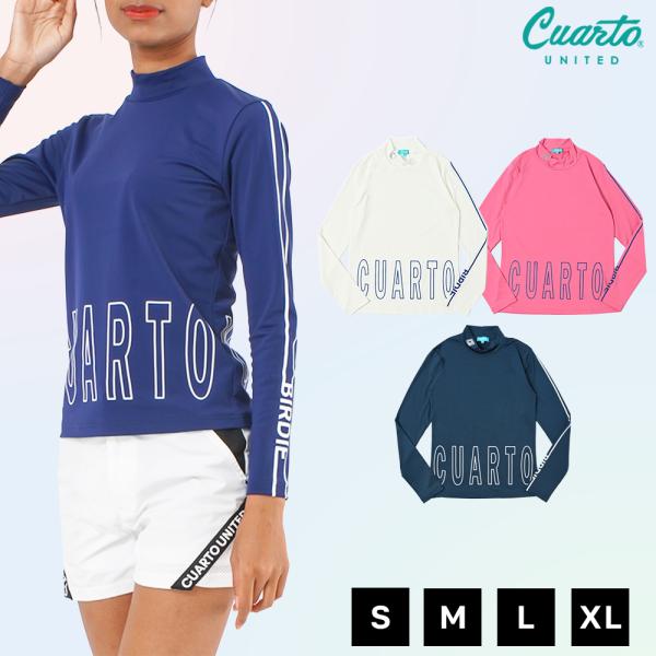 モックネックシャツ 長袖 接触冷感 吸水速乾 UVカット ビッグロゴ ダブルロゴライン レディース クアルトユナイテッド ゴルフウェア ロンT 23SS