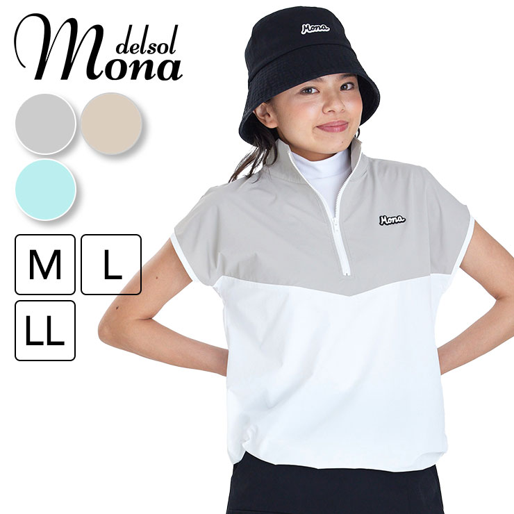 m0055 mona delsol バイカラーフレンチスリーブプルオーバー 春夏 M/L/LL 大きいサイズ おしゃれ レディースゴルフウェア