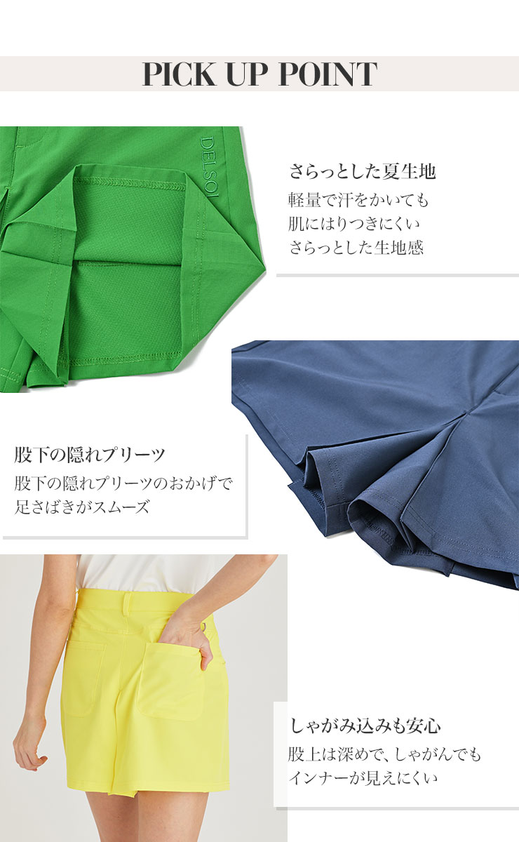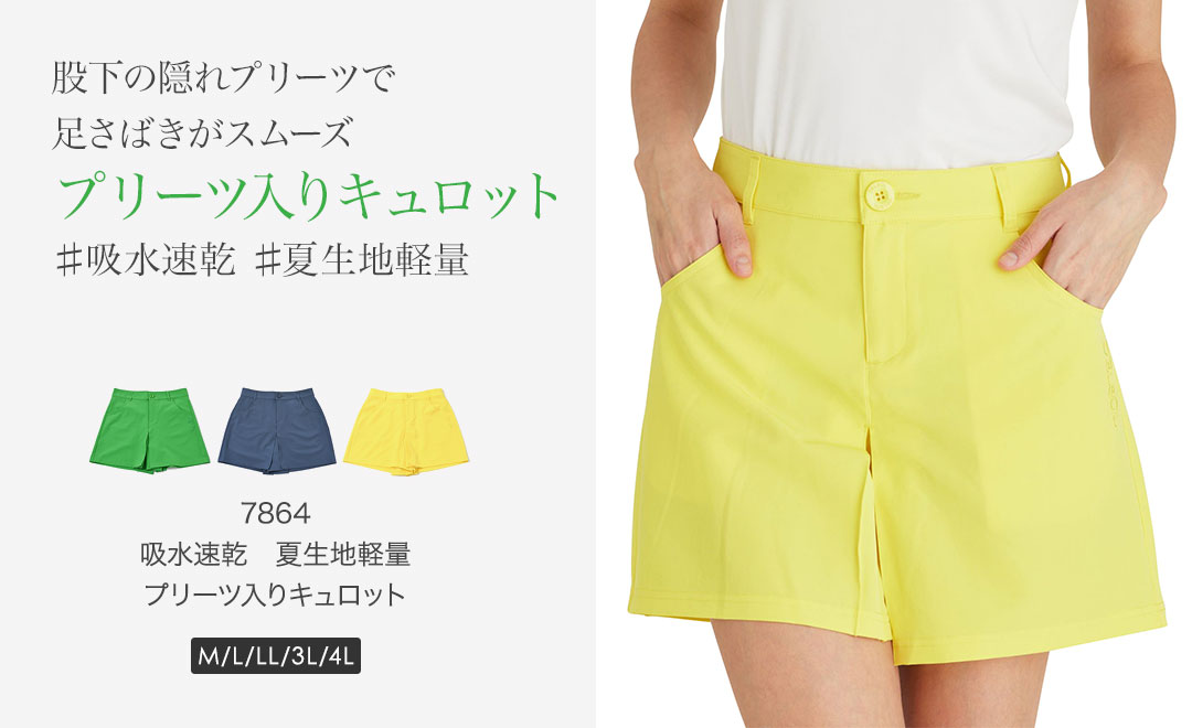 吸水速乾 夏生地軽量プリーツ入キュロット 当店人気 夏仕様 M/L/LL/3L/4L 豊富なサイズ レディースゴルフウェア