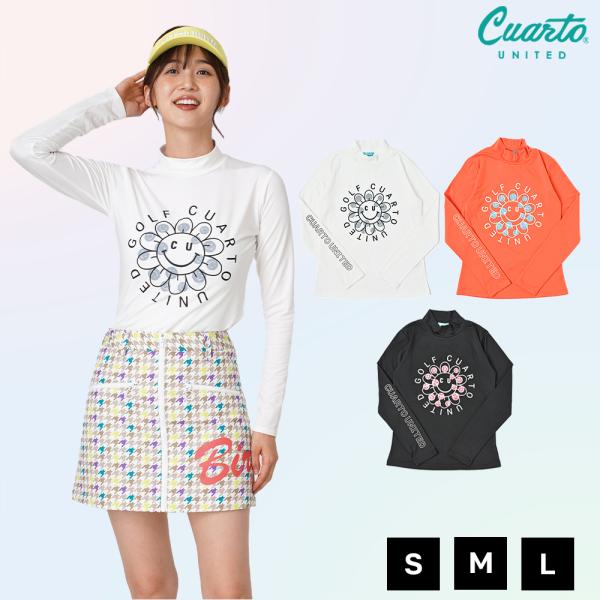 モックネックシャツ 長袖 微起毛 フラワースマイル レディース クアルトユナイテッド ゴルフウェア ロンT 23FW