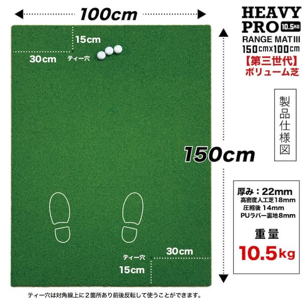 高重量10.5kg・第三世代ボリューム芝 HEAVY PRO RANGE MAT ヘビープロレンジマットIII 150cm×100cm ゴムティー2個 LL&L 付き 爆買