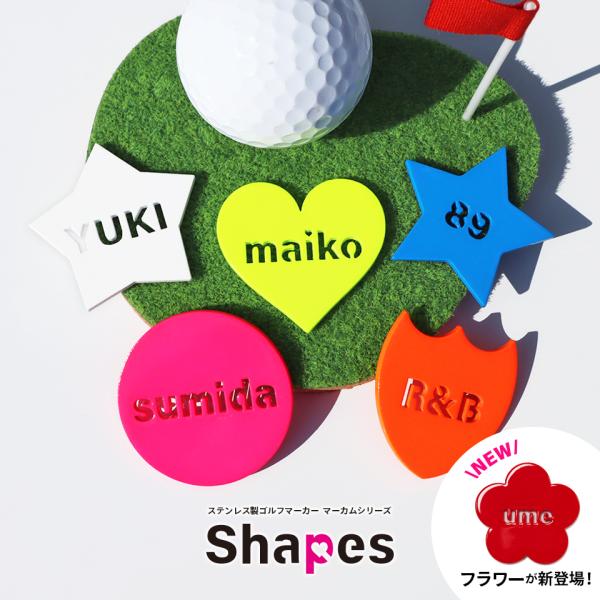 ゴルフ マーカー おもしろ 名入れ 蛍光 大きい 還暦 おしゃれ ボールマーカー 名前 マグネット オリジナル 1個 MARCAM Shapes(golfmarker21)