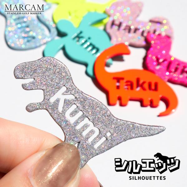 ゴルフ マーカー 名入れ マグネット ボールマーカー 蛍光 ラメ 大きい 恐竜 犬 猫 おしゃれ 名前 MARCAM シルエッツ(golfmarker48)