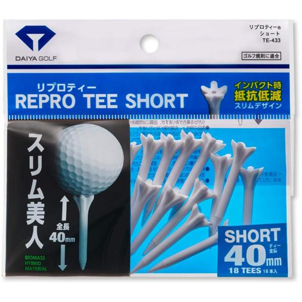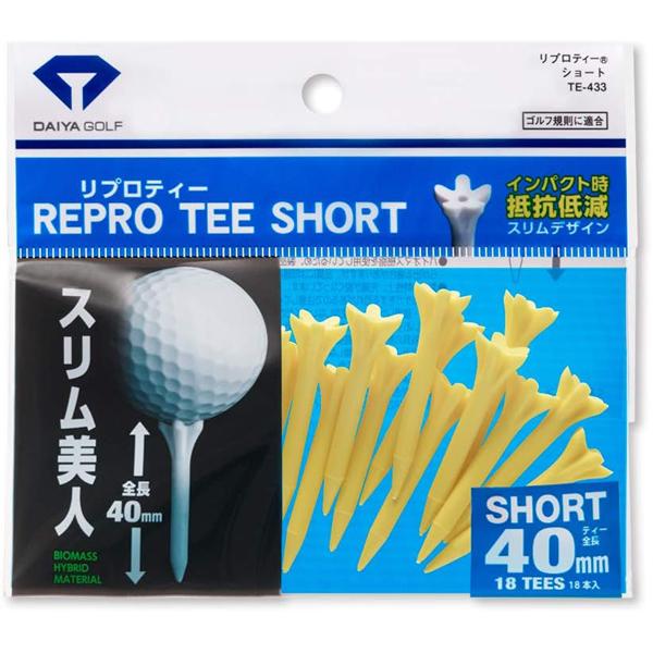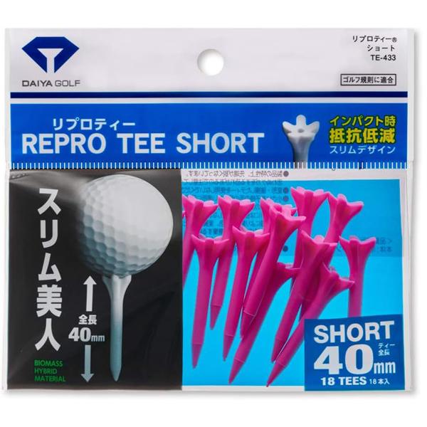 DAIYA ダイヤゴルフ リプロティー ショート TE-433 全長40mm ゴルフティー ホワイト ピンク イエロー ブルー スリム美人 大容量 インパクト 抵抗 カラフル