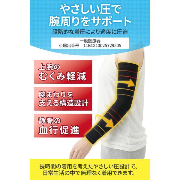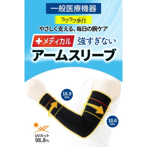 医療用 着圧アームスリーブ アームカバー UVカット 両腕用 ゆるめ 一般医療機器 ラクラク歩行 メディカル サポーター 二の腕 日焼け対策 むくみ解消