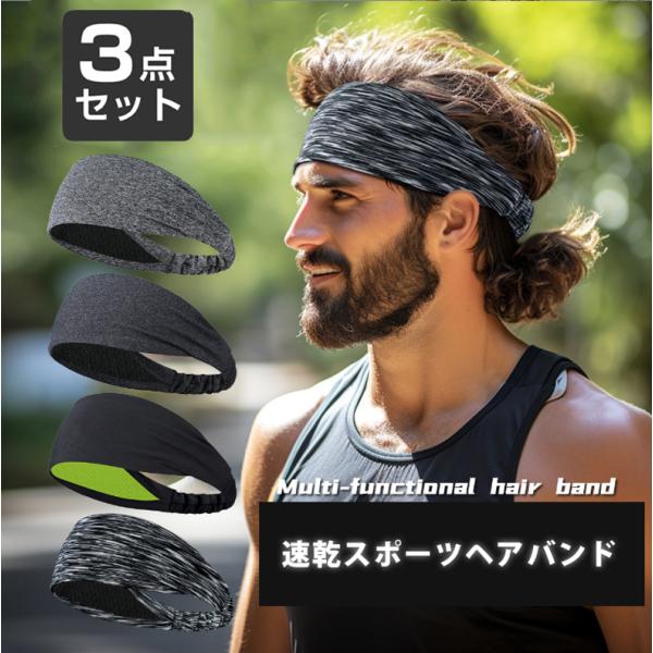 吸汗 ヘアバンド 3点セット 男女兼用 レディース メンズ スポーツ 汗 止め ヘッド バンド ヘアアクセサリー ランニング ヘアゴム 髪留め 660