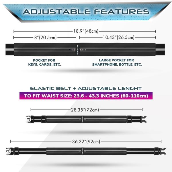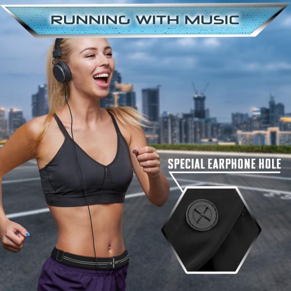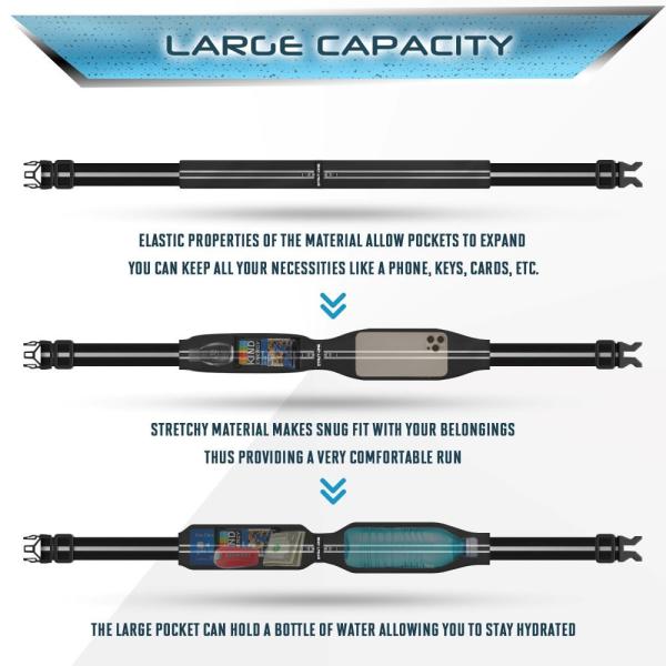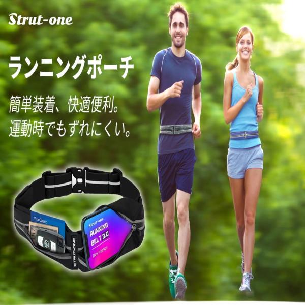 Strut-oneランニングポーチ ウエストポーチ 揺れないズレない軽量スマホもペットボトルも入る大容量メンズ レディース ブラック