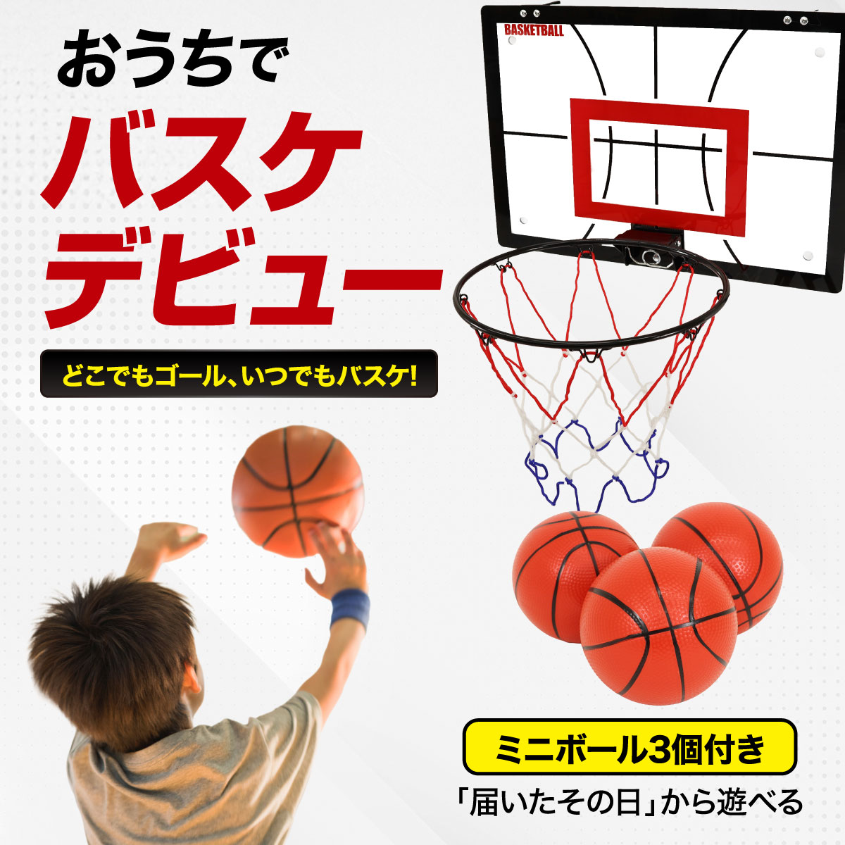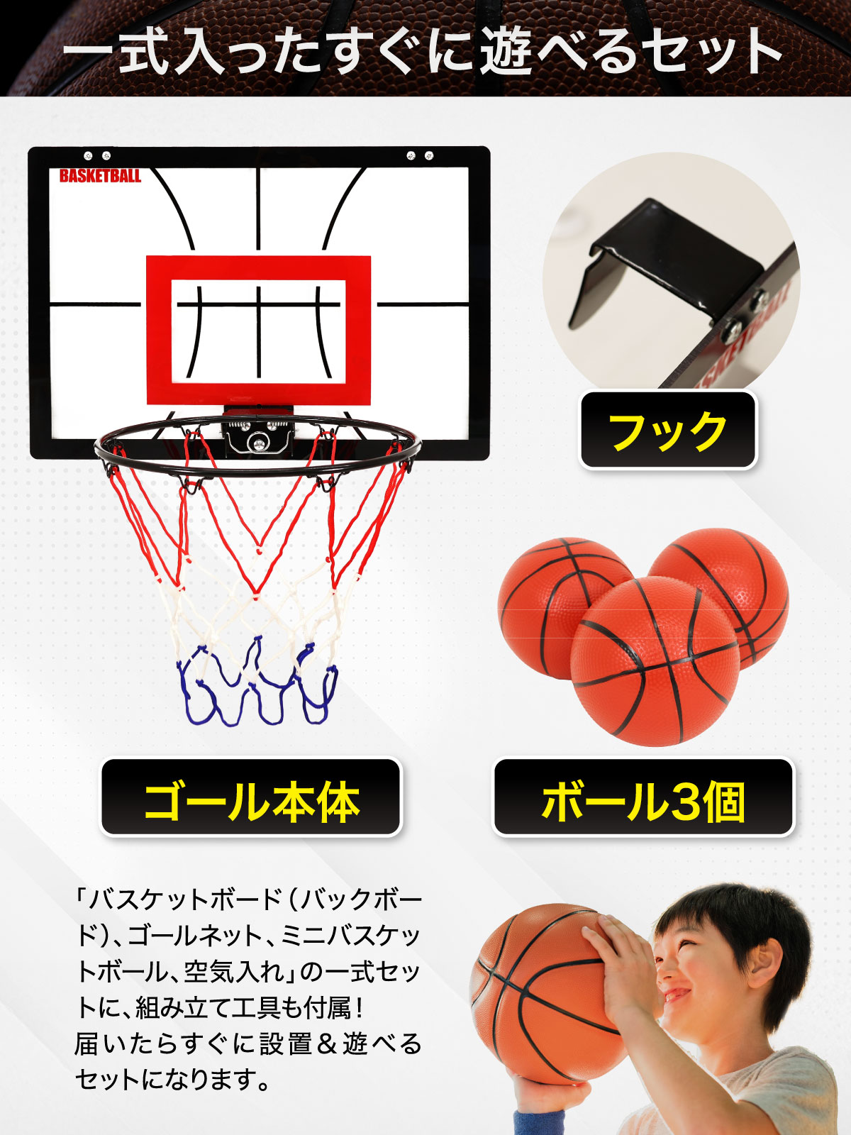 壁掛け バスケットゴール 室内 ドア掛け 家庭 子供 バスケ シュート練習 ミニバスケットボード おもちゃ ボール3個付き 空気入れセット (大サイズ/36×52cm)
