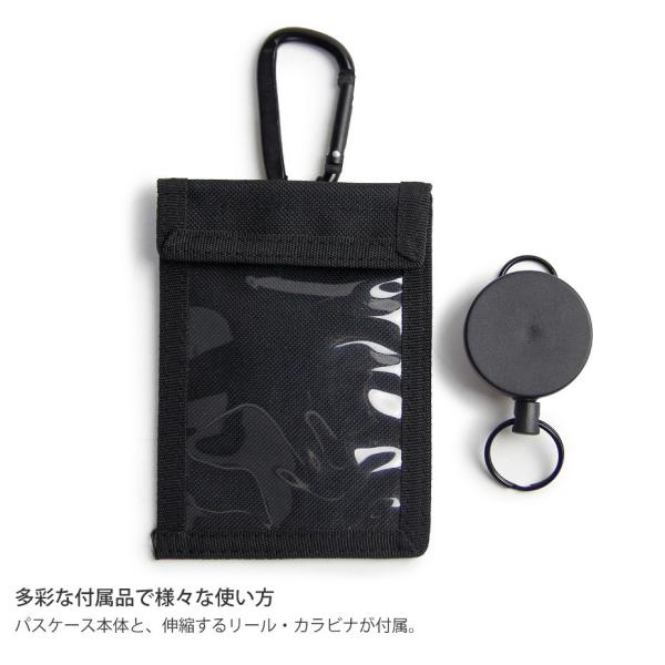 パスケース チケットケース リフト券入れ ICチケット対応 カラビナ リール付 スノーボード ウェアやスキーウェアに取り付けて