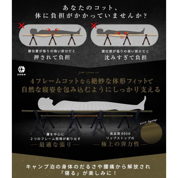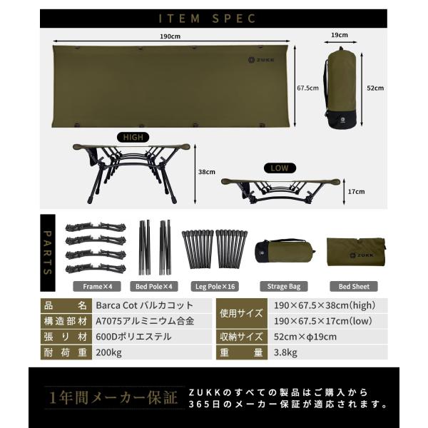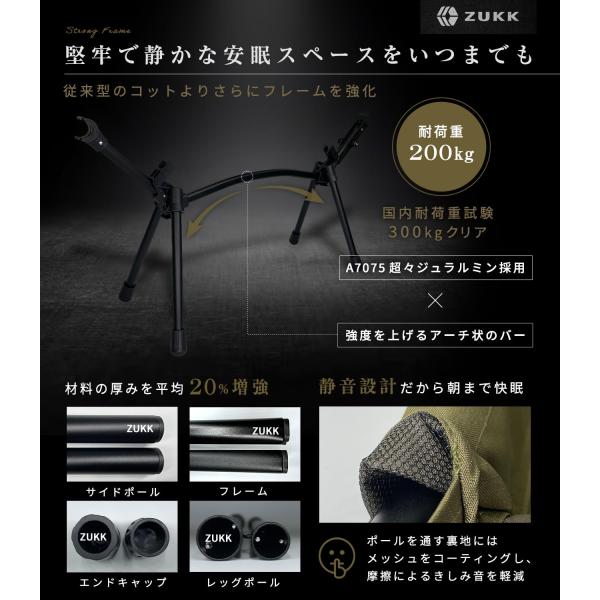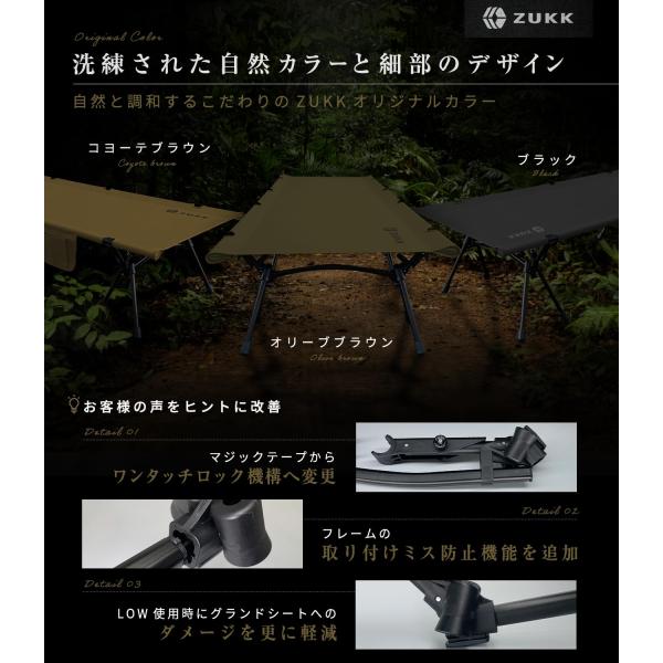 ZUKK ズック 公式 コット 2WAY 耐荷重200kg キャンプ ベッド 高耐久 折りたたみ ハイ/ロー切替可能