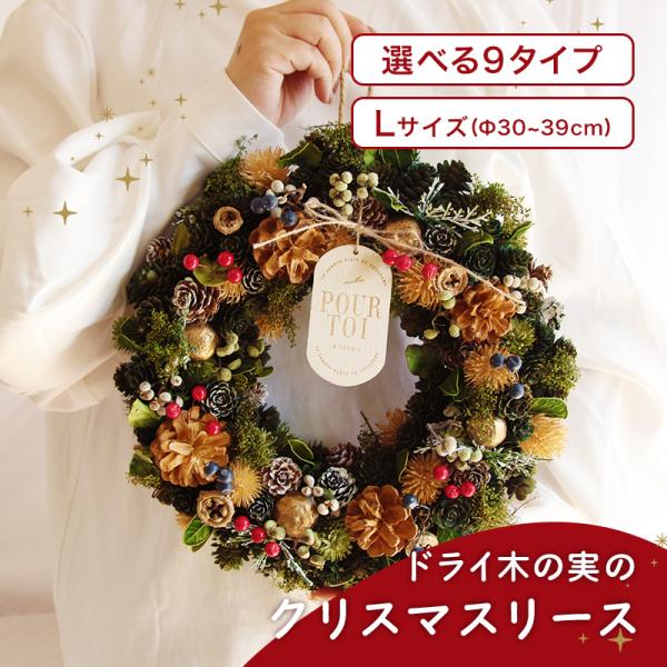 クリスマス リース 即日出荷 ドライ木の実のクリスマスリースL 玄関 クリスマスリース ドライリース ナチュラルリース 壁掛け インテリア ドア