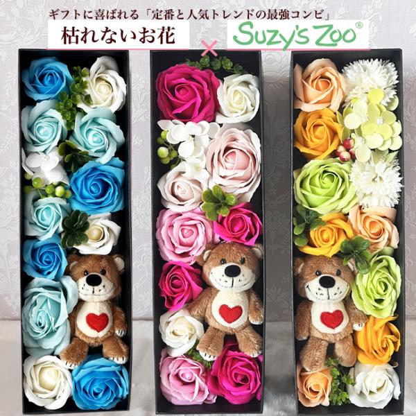 スージーズー 誕生日 結婚式 電報 大人 結婚祝い 花 フラワーギフト プレゼント ギフト 枯れないお花 フラワーアレンジメント ソープフラワー くま Boof ブーフ