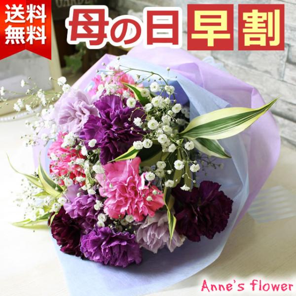 早割開催中! 母の日 花 プレゼント ギフト 2026 紫のカーネーション ムーンダスト アレンジ 花束 送料無料 カーネーション ギフト 爆買