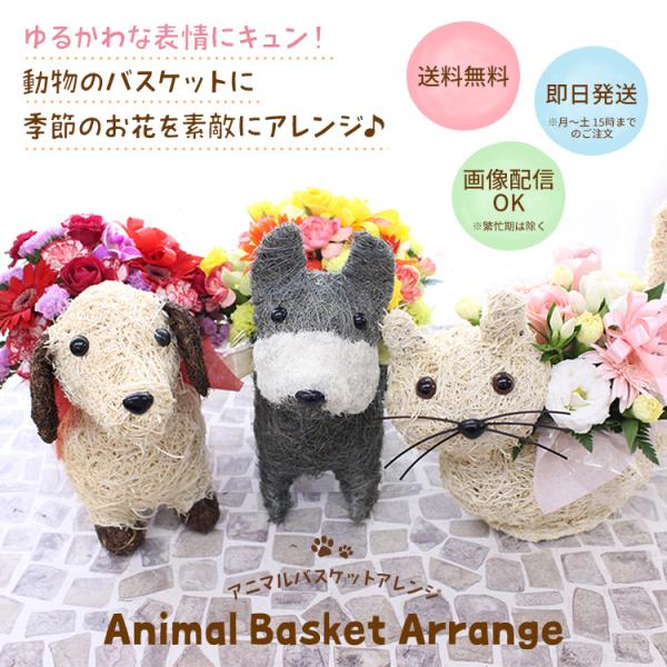 動物とお花のイメージが選べる【アニマルバスケットアレンジ】季節の花でおまかせ 誕生日 卒園卒業 入園入学 母の日 開店 退職 ペット [生花アレンジメント]