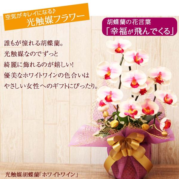 光触媒 胡蝶蘭 アレンジ 華あそび 彩り ミニ ミディ ギフト お祝い インテリア 枯れない花 ホワイト ワイン