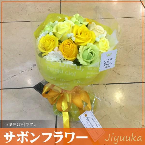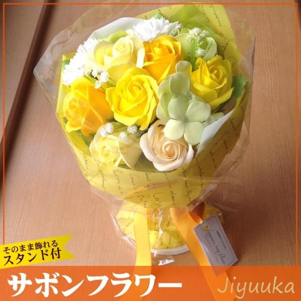 ソープフラワー サボンフラワー 花束 ギフト イエロー ブーケ 12本 米寿 バラ カーネーション 誕生日 新築祝い 引越祝い 改築祝い お祝い プレゼント スタンド付