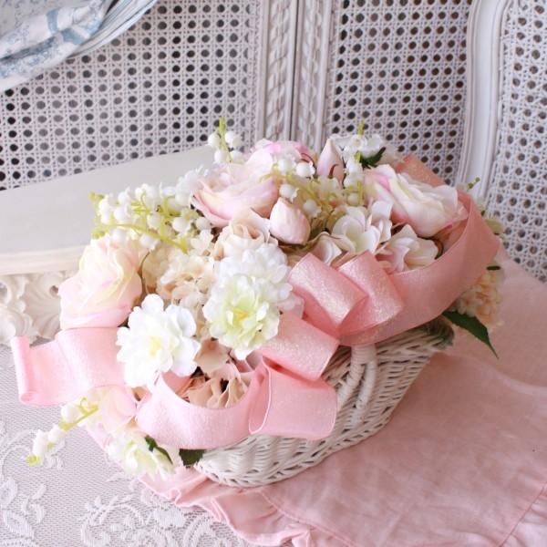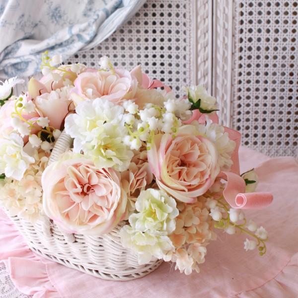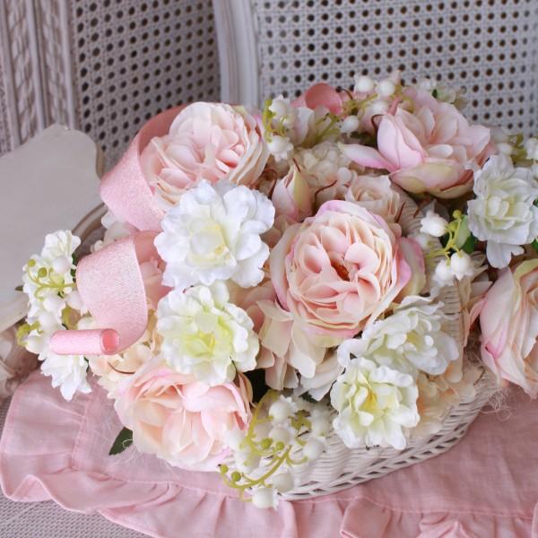 造花 フラワーアレンジメント 鈴蘭ローズアレンジB ピンク 洋風 ギフト アーティフィシャルフラワー シルクフラワー アートフラワー バラ 薔薇 かわいい 贈り物