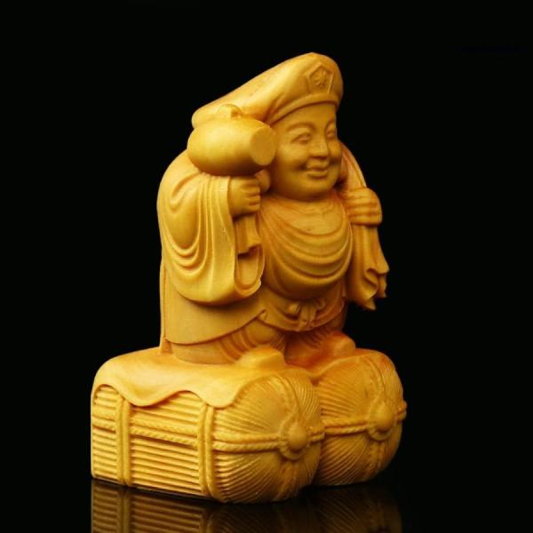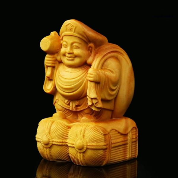 木彫りの仏像 大黒天 置物 (高さ6cm×巾3.2cm) ツゲ 柘植 開運招福七福神 ミニ仏像 置物 フィギュア ◆商売繁盛・無病息災・福徳・福運・厄除け