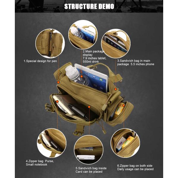 ロック式D型カラビナ付【COMBATRON】(3色) MOLLE対応 ミリタリー 4WAY タクティカル ウエストバッグ ロードバイク ウエストポーチ ショルダーバッグ 爆買