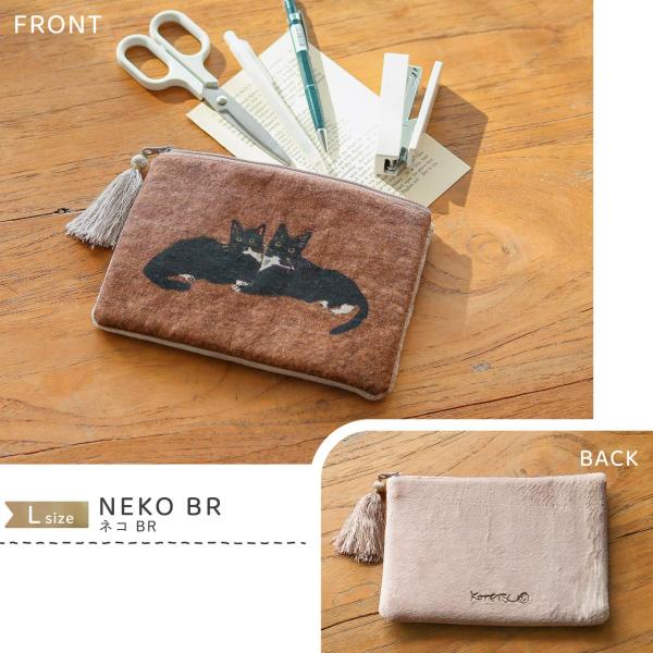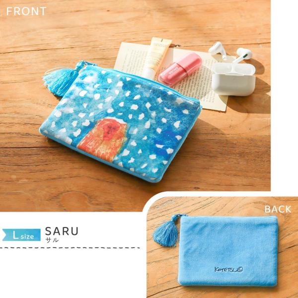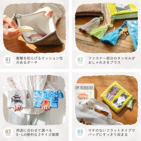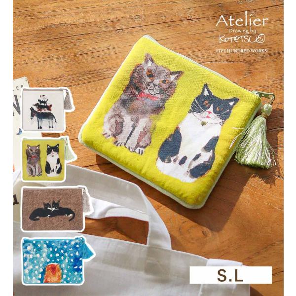 公式 クッションポーチ フラットポーチ タッセル付き 動物柄 コスメポーチ ガジェットケース イヤホン収納 アトリエコテツ クッションポーチ / 新入荷 /
