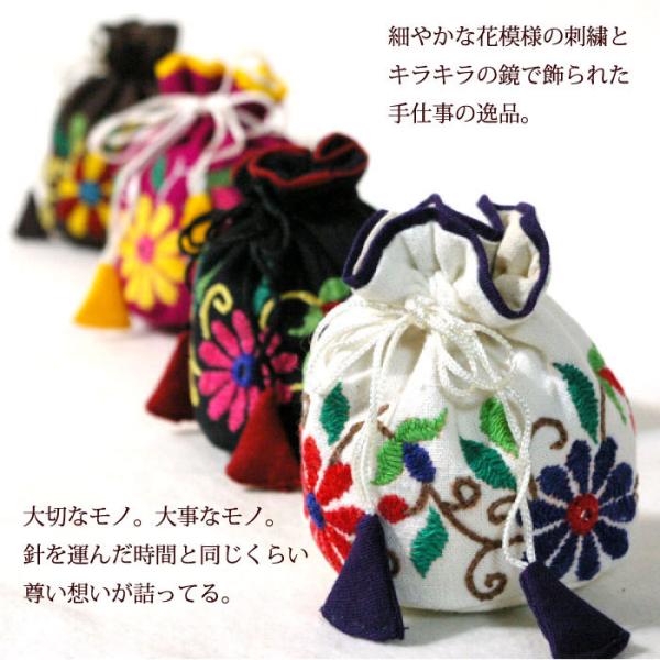 アクセサリーポーチ 布製( インド・ミラー刺繍ジュエリーポーチ )フェアトレード アジアン 刺繍 巾着袋 (メール便可)