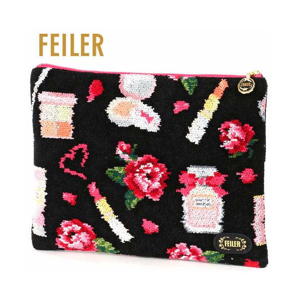 [メール便対応]正規品 FEILER(フェイラー)エターナルヒロイン フラットポーチ ブラック(ギフト プレゼント 贈り物 化粧ポーチ 小物入れ バッグインバッグ)