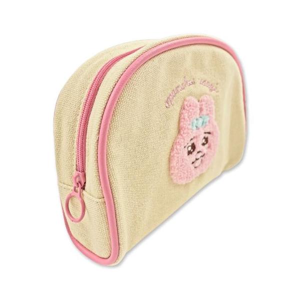 [メール便対応]おぱんちゅうさぎ サガラ刺繍 ラウンドポーチ アイボリー なみだ(可哀想に! KAWAISOUNI! コスメポーチ メイクポーチ 化粧ポーチ 小物入れ)