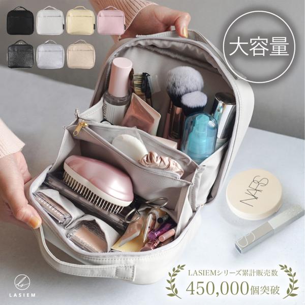 ポーチ メイクポーチ 大容量 自立 ブランド レザー ナイロン 大きめ 旅行 化粧品 小物入れ ラシエム
