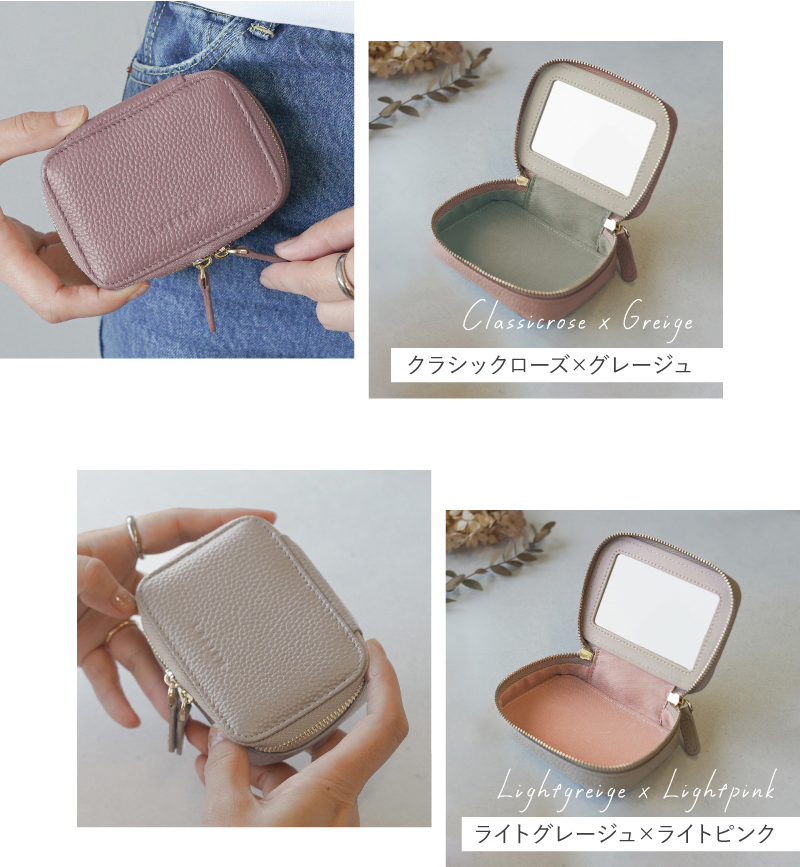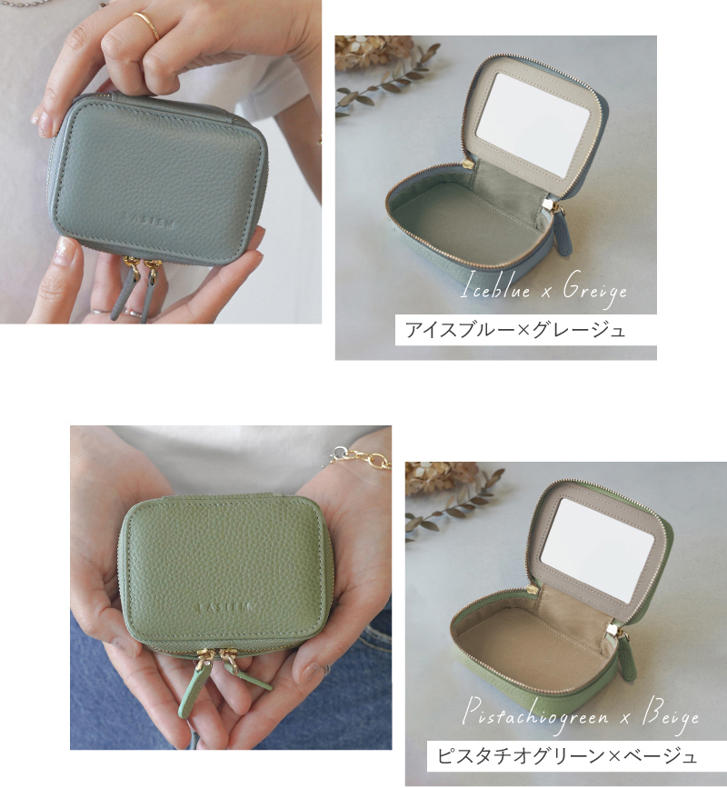 リップケース 本革 鏡付き ミニポーチ 口紅ケース 小物入れ アクセサリー 30代 40代 50代 ラシエム