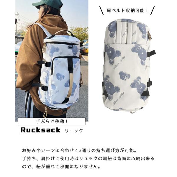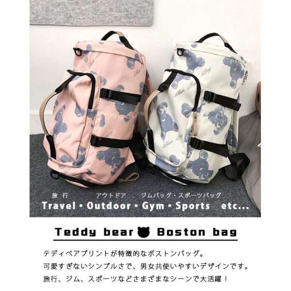 ボストンバッグ 旅行バッグ リュック ショルダー 斜め掛け ジム 修学旅行 1泊 2泊 レディース メンズ 背負える 靴収納 クマ テディベア GPT 送料無料(gu1c247)